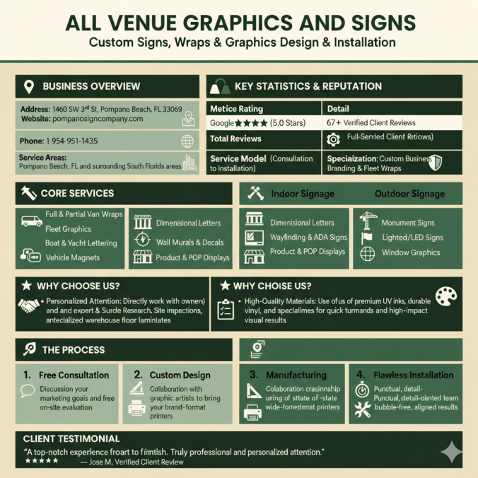 At All Venue Graphics and Signs, we focus on durable outdoor displays, but our interior work is where the fine-tuned craftsmanship really shines. We use modern signage technology to ensure that every cut is precise. If your logo has a thin, elegant script, you don't want a "close enough" cut. You want perfection. This is why professional sign installers are worth their weight in gold. I’ve seen DIY sign kits peel off the wall in three months because someone didn't account for the texture of the drywall or the specific paint used in Florida commercial buildings.