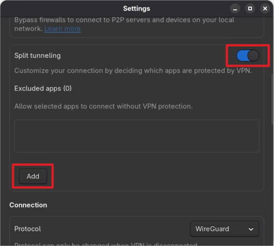 Proton VPN's Linux client now permits specific application exclusion from VPN routing